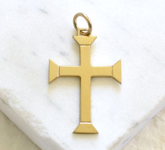 Solid 14kt Gold Dimensions: 7/8″ wide by 1 3/16″ high This design was found in a fresco in a side... Read More